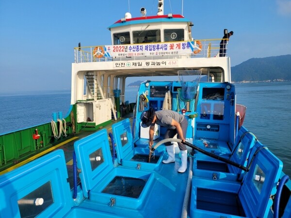 금번 방류에는 해당지역 어촌계장 및 어업인들의 입회하에 대이작 해역에 22.5만마리, 소이작 해역에 22.5만마리를 방류 했다.