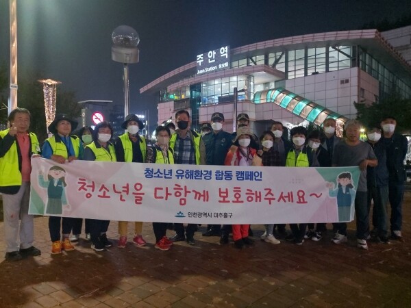 구는 주안역 일대 청소년 유해업소가 밀접한 2030거리 등을 대상으로 미추홀경찰서 청소년유해환경감시단, 시민명예감시원과 함께 청소년 유해환경 정화 활동을 실시했다.