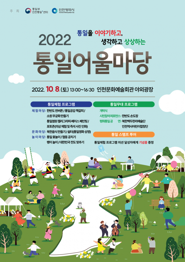 나기운 인천시 국제평화협력담당관은 “이번 행사를 통해 통일에 대한 시민들의 공감대가 확산되는 계기가 되기를 바란다”며 “앞으로도 지속적인 관심을 가지고 다양한 사업들을 추진해나가겠다”고 말했다.