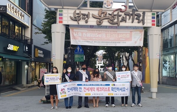 구는 한국공인중개사협회 부평지회와 협업해 전세보증금을 지키기 위한 핵심 체크리스트와 홍보물품을 주민들에게 배부했다.