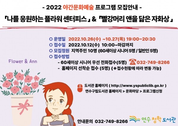 접수일은 10월 12일부터 정원마감까지며 시니어를 제외한 일반인은 도서관홈페이지로 접수하면 된다.