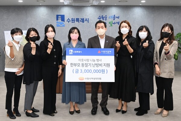 후원금은 수원시여성리더회 회원들이 저소득층 한부모 가족에게 동절기 난방비를 지원하기 위해 십시일반 모금해 마련했다.