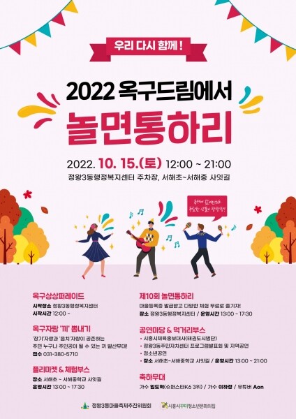 축제는 오는 15일 오후 12시부터 정왕3동 행정복지센터 앞마당과 서해초와 서해중 사잇길에서 열린다.