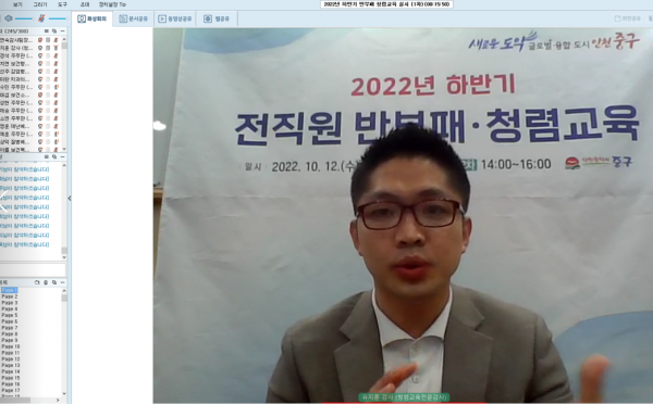 구는 국민권익위원회 청렴연수원 등록 청렴전문교육 강사인 유지훈 강사를 초빙해 전 직원을 대상으로 오전·오후로 나눠 실시간 온라인으로 교육을 진행했다.