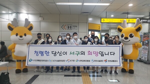 반부패 청렴 문화를 확산하고 청렴 실천 의지를 다질 수 있었던 이번 캠페인에는 서구를 비롯해 인천광역시 서부교육지원청, 인천광역시 시설관리공단, 인천광역시 서구시설관리공단, 수도권매립지관리공사, 인천교통공사 등 6개 기관 직원들이 참여했다.