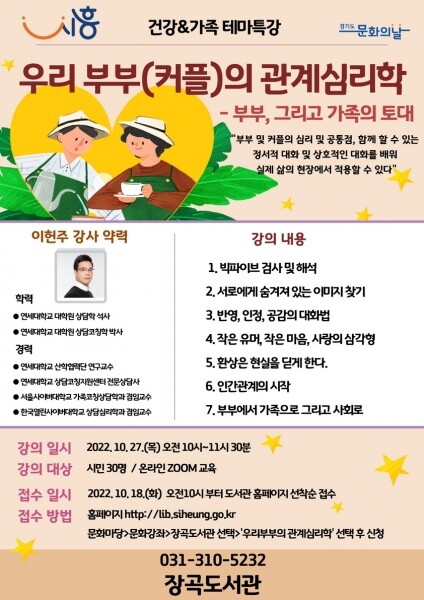 강좌 참여를 희망하는 시민은 오는 18일 오전 10시부터 시흥시중앙도서관 누리집에서 신청하면 된다.