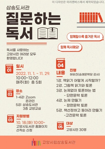 참가자는 10월 18일 오전 10시부터 고양시도서관센터 홈페이지에서 선착순으로 접수한다.