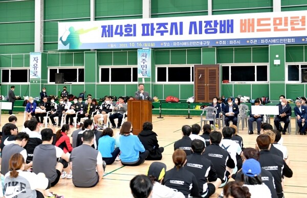 파주시 배드민턴협회 주관으로 진행된 이날 대회에는 김경일 파주시장을 비롯해 윤후덕 국회의원, 이성철 파주시의회 의장, 선수 및 관계자 등 500여명이 참석했다.