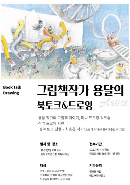 권예자 파주중앙도서관장은 “용달 작가의 그림 시연을 연계한 북토크를 통해 시민들이 그림책 장르를 이해하고 즐길 수 있는 기회가 되길 기대한다”며 “0세부터 100세까지 함께 볼 수 있는 그림책의 숨은 매력을 발견하는 시간이 되길 바란다”고 전했다.