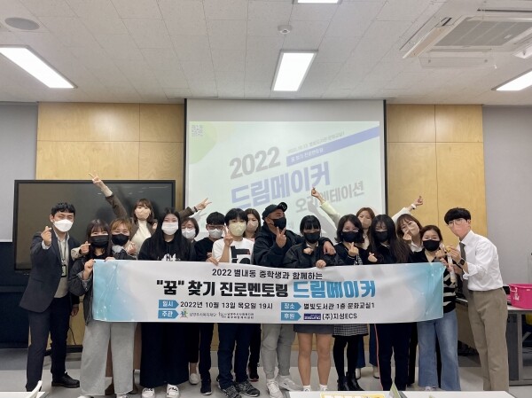 ‘드림 메이커’ 프로그램은 별내동 지역 중학생 10명을 대상으로 사회적기업 청봄과 함께 꿈 찾기 진로 멘토링을 진행해 학생들의 진로에 대한 고민을 해결하고 앞으로의 진로 계획을 세울 수 있도록 지원하는 사업이다.