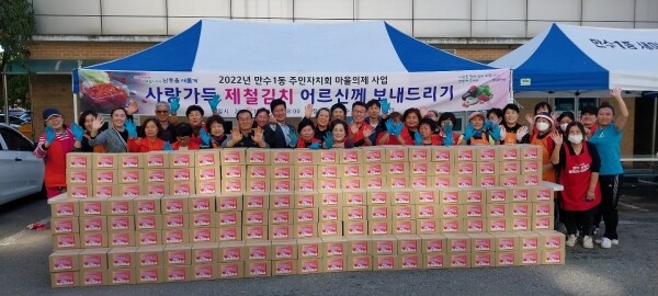 한편 만수1동 주민자치회는 지난 6월에도 제철김치를 담가 저소득 홀몸 어르신 및 취약계층 250가구에 지원하는 등 지속적으로 이웃사랑 나눔 행사를 이어나가고 있다.