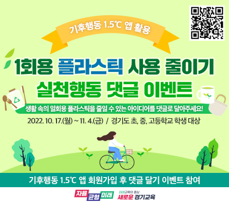 이번 행사는 도내 초, 중, 고 재학생들을 대상으로 1회용품 없는 학교를 만들기 위한 구체적인 실천 방법을 이끌어내는 것으로 환경부가 만든‘기후행동 1.5℃ 앱’을 통해 진행한다.