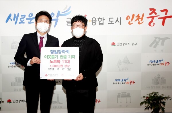 이날 기탁받은 노트북는 인천사회복지공동모금회를 통해 접수 후 중구의 초·중·고등학생들에게 전달될 예정이다.