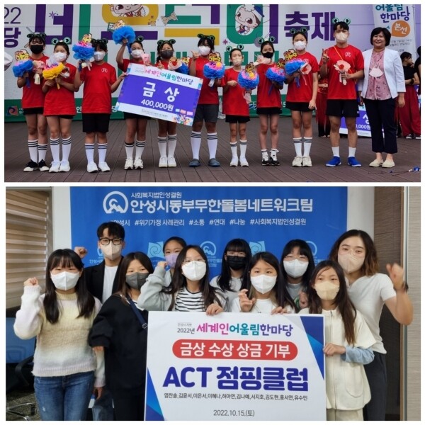 안성시동부무한돌봄네트워크팀 정은주 센터장은 “소통과 화합의 장인 축제에서 수상한 상금을 기탁자의 뜻을 따라 관내 저소득 아동·청소년을 위해 나눠 두 배의 기쁨이 됐다”고 말했다.