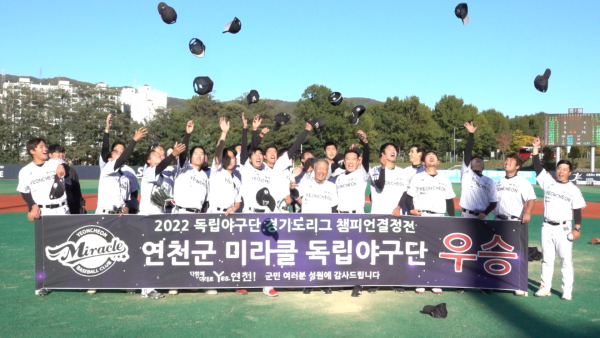 연천미라클은 지난 17일 광주 팀업캠퍼스 제2구장에서 열린 2022 독립야구단 경기도리그 챔피언 결정전 4차전에서 11대6으로 승리하며 최종 전적 3대1로 성남시 맥파이스를 꺾고 우승을 차지했다.