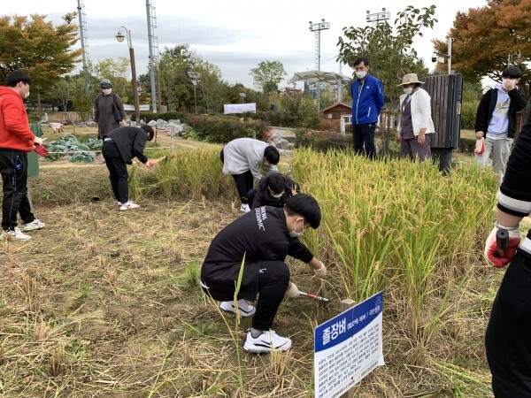 이날 행사에서는 지난 6월 모내기 과정을 거쳐 친환경 농법으로 심은 토종벼를 직접 수확하고 전통 탈곡 방식을 체험할 수 있으며 인절미 만들기와 벼 이삭 그리기 등 다양한 체험 활동도 예정돼있다.