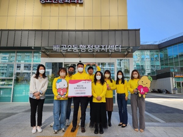 이번 전달식은 지난 9월 17일 배곧2동 축제 ‘윈드페스타’ 개최 이후, 배곧2동 축제추진위원회 위원들이 관내 어려운 이웃을 위해 자체적으로 모금한 성금 100만원을 시흥시 1%복지재단에 직접 전달하면서 마련된 자리다.