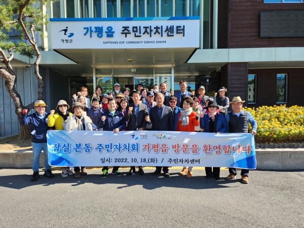 임상호 가평읍장은 “오늘 가평읍을 방문해주신 잠실본동 주민자치회 여러분을 환영하고 우리 가평읍주민자치위원회는 5개 분과를 중심으로 주민자치프로그램 운영, 소외계층을 위한 사회봉사, 환경정화 활동 등 다방면으로 활발히 활동하고 있는 주요 단체이기에 오늘 방문이 잠실본동 주민자치회에 유용한 시간이 될 것이라 생각한다”고 말했다.