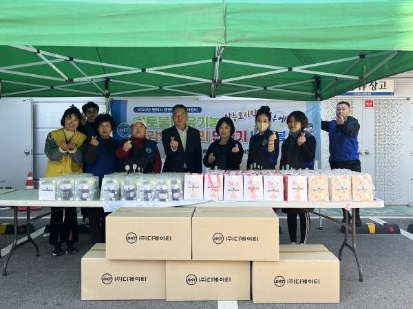 이번 나눔 행사에는 한국자유총연맹 회원 15여명이 참여해 직접 만든 막장, 블루베리 잼 및 마스크를 관내 소외된 이웃 100세대에 전달했다.