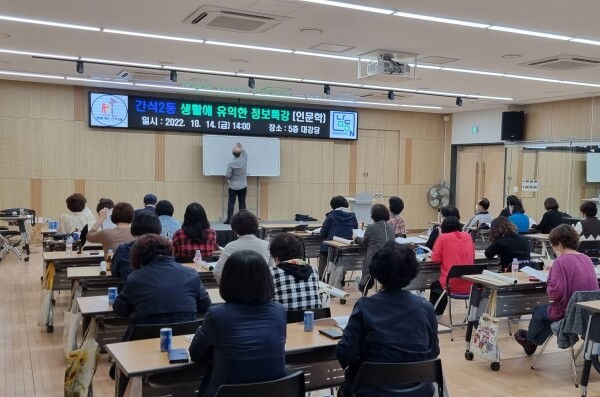 이번 특강은 지난해 주민총회에서 선정된 ‘행복한 우리 마을 만들기 사업’의 하나로 8월 ‘건강과 공공의료’와 9월 ‘보이스피싱 예방’ 에 이어 10월 ‘인문학’까지 총 3회에 걸쳐 진행했다.