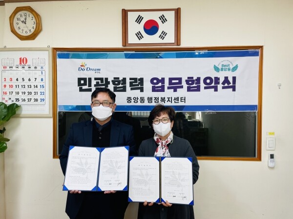 한편 김태화 중앙동장은 “이번 협약을 계기로 사회복지협의회와 지속가능한 아름다운 동행을 이어 나갈 수 있도록 노력하고 장기적으로 관내 지역 주민들의 복지 체감도가 향상되길 기대한다”고 밝혔다.