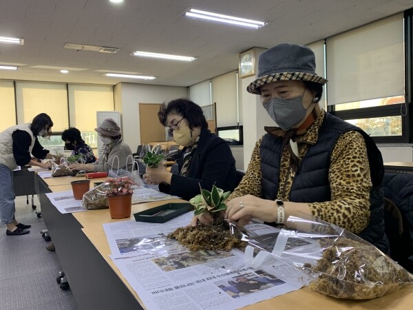 이어 더 건강한 정신을 주제로 치매예방을 위해 공기정화식물 토피어리 수업은 진행했다.