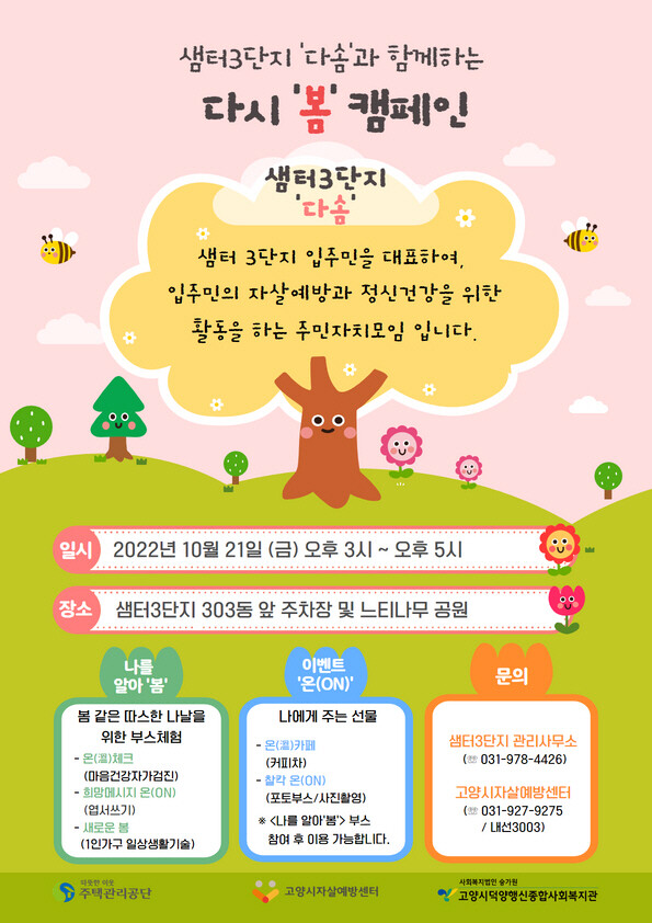 이번 캠페인은 주택관리공단 샘터3단지 주거행복지원센터, 덕양행신종합사회복지관, 샘터3단지 주민활동가 ‘다솜’과 함께 진행한다.