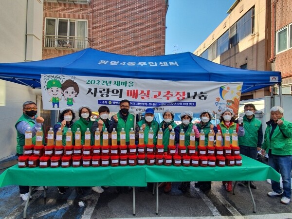 윤경희 새마을부녀회장은 “준비한 고추장을 받고 기뻐하는 주민들의 모습을 보니 보람을 느낀다”며 “작은 정성이지만 사랑의 고추장과 숙성된 매실청을 맛있게 드시고 조금이나마 힘을 얻어 다가오는 추위를 건강히 이겨냈으면 좋겠다“고 말했다.