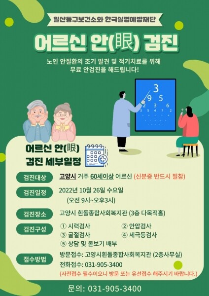 보건소 관계자는 “한국실명예방재단과 함께 관내 어르신들께 도움이 되는 사업을 펼치게 되어 기쁘다”며 “이 사업을 통해 어르신들이 눈 건강에 관심을 갖고 노인성 안질환을 예방하시기 바란다”고 전했다.