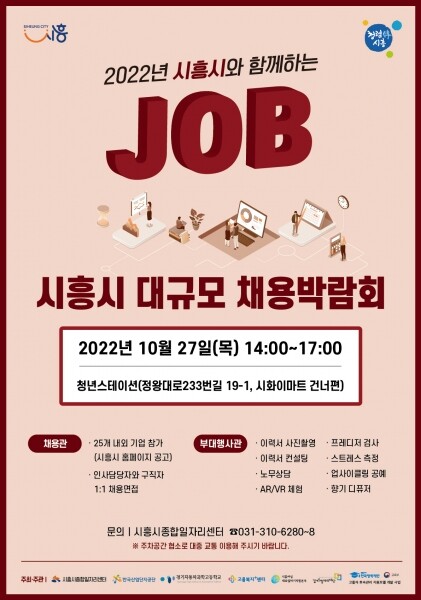 채용박람회를 총괄 주관하는 엄계용 시흥시 일자리총괄과장은 “코로나19가 아직 종식되진 않았지만, 그동안 구인·구직난의 어려움을 겪은 구인기업과 구직자들에게 조금이나마 힘을 주고자 한마음으로 관내·외 일자리기관이 협업해 기획한 만큼, 보다 많은 시민이 참여해 만족하는 일자리를 찾을 수 있기를 바란다”고 전했다.