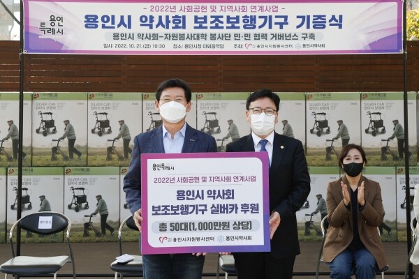 이번 1000만원 상당의 실버카 50대 기탁은 용인시 약사회 온라인 모금회를 통해 회원들이 십시일반으로 모아 마련한 것이다.