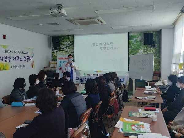 이날 강좌에 참여한 생활 지원사는 “앞으로는 어르신을 대상으로 안전과 일상생활 돌봄 서비스 외에도 고혈압, 당뇨 예방관리에 대한 정보를 제공해드릴 수 있을 것 같다 보건소 건강강좌에 적극 참여하겠다”고 말했다.