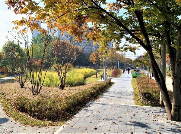건강하고 모양이 좋은 나무는 최대한 보존하되 계절의 변화를 느낄 수 있도록 1만5190본의 나무와 초화류를 심고 산책로를 만들어 주민들이 마음껏 즐길 수 있도록 했다.