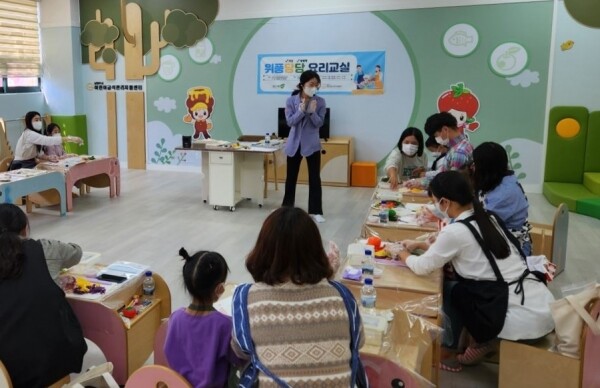 ‘위풍당당 요리 교실’은 저당 식습관을 주제로 해 건강한 당류 고르기와 채소를 잘 먹는 식습관 만들기를 목표로 1일 2회, 총 4회차 교육으로 진행됐으며 아이들과 학부모가 함께 참여했다.
