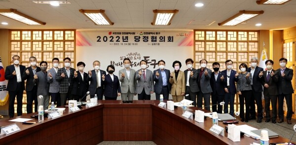 당정협의회에는 김찬진 동구청장을 비롯해 정승연 인천광역시당 위원장, 심재돈 전 동구미추홀갑 당원협의회 운영위원장, 전성식 인천광역시당 사무처장 등 지역 시·구의원과 당직자, 간부공무원 등 24명이 참석했다.