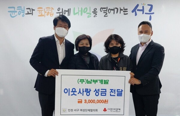 이날 전달식에서 강범석 서구청장은 “이웃을 위해 활동하는 서구 여성단체협의회와 ㈜남부개발에 진심으로 감사드린다”며 “서구도 소외되는 이웃이 없도록 최선을 다하겠다”고 말했다.