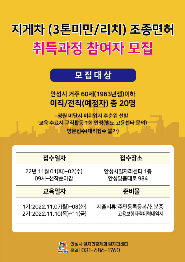 이번 교육은 지속적으로 증가하는 지게차 운전 기능사 구인 수요에 맞춰 일자리를 찾고 있는 안성시민들이 지게차 운전 기능사로 취업할 수 있도록 마련됐다.