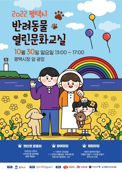 이번 행사는 반려인과 반려동물이 함께 교감하고 즐길 수 있는 펫티켓 운동회, 참여마당, 체험마당에서는 반려동물을 위한 간식·리드줄 등 다양한 프로그램을 진행한다.