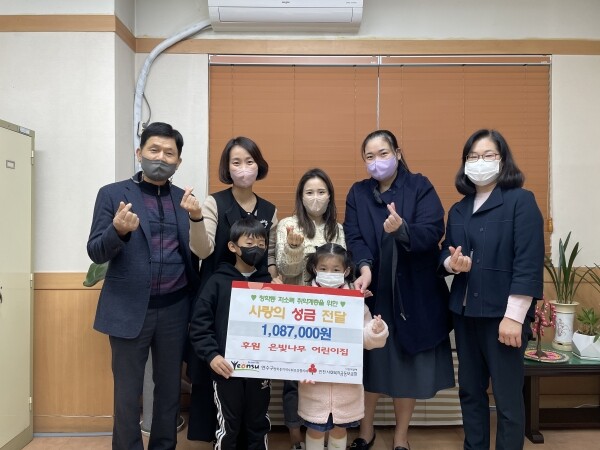 이번 성금은 은빛나무 어린이집 학부모와 원생들이 행사·바자회를 개최하고 모은 수익금으로 지역 내 어려운 복지사각지대 가구와 소외된 이웃들에게 사용될 예정이다.