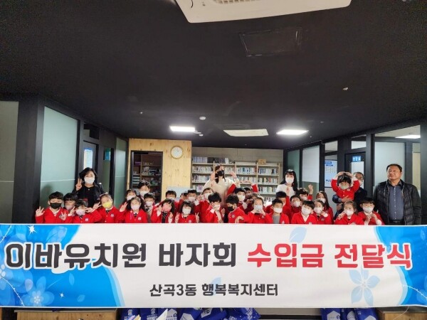 김수진 산곡3동장은 “아이들이 직접 판매한 수익금으로 어려운 이웃을 돕겠다는 마음이 따뜻하다”며 “그 따뜻한 마음을 도움이 필요한 이웃들에게 소중히 전달하겠다”고 말했다.
