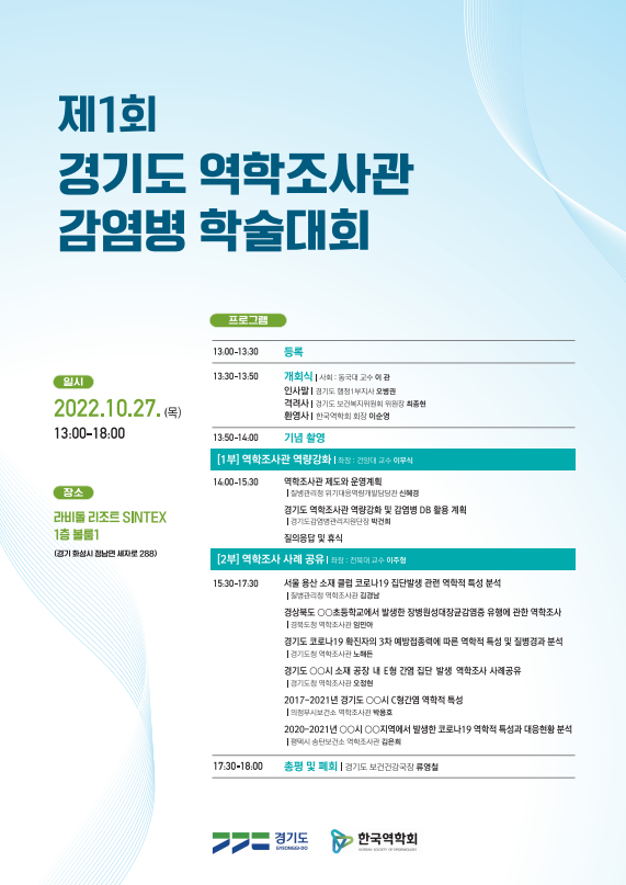 이번 학술대회는 경기도 주최, 한국역학회 주관으로 광역자치단체 차원에서는 처음 열리는 역학조사관 감염병 학술대회다.