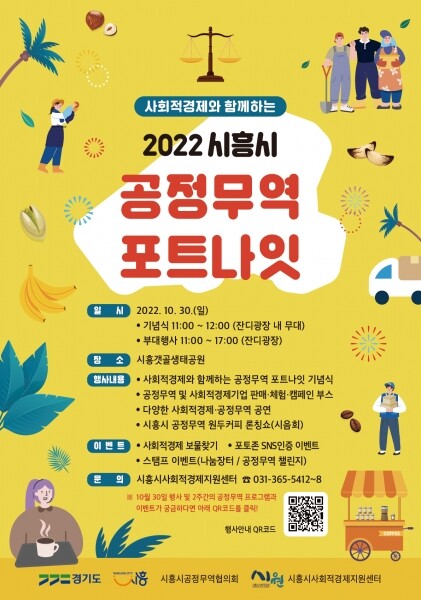 이날 행사에서는 공정무역도시 재인증 기념식, 공정무역 O/X퀴즈, 시흥시 로컬 페어트레이드 제품 시음회, 사회적경제 기업과 함께하는 나눔장터 등 사회적경제와 공정무역의 의미를 알리고 제품을 체험하는 30여 개의 다양한 체험부스를 비롯해, 마술공연, 비눗방울쇼 등의 기념공연도 선보인다.
