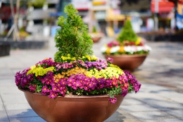 이번 설치는 지난봄에 설치한 꽃박스 15개, 원형화분 20개에 국화와 수크렁, 억새 파랑새 등의 사초류 1,500본을 보충 식재했다.