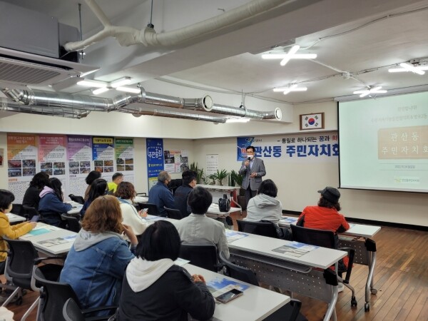 이날 관산동 주민자치 위원들은 망포2동 주민자치회·지속가능발전협의회 위원들에게 관산동의 주요 사업 5가지에 대해 소개했다.