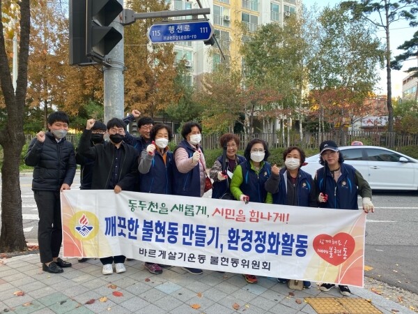 이수영 불현동 바르게살기위원장은 “쌀쌀한 가을 날씨에도 불구하고 불현동의 깨끗한 환경조성을 위해 참여해주신 위원분들께 감사의 말씀을 드린다 앞으로도 지속적인 환경정화 활동과 캠페인을 통해 쾌적한 불현동 이미지를 조성하고 지역주민에게도 주인의식을 가지고 깨끗한 동네 만들기에 동참할 수 있도록 노력하겠다”고 전했다.