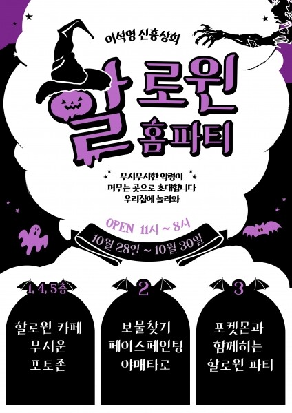 이번 핼러윈 이벤트의 운영 시간은 오전 11시부터 오후 8시까지로 작년에 실시된 ‘오싹한 신흥상회’ 행사에 이어 올해도 청년창업센터에 방문하는 시민이 핼러윈 시즌의 특별한 분위기를 느끼고 일상의 스트레스를 해소할 수 있도록 기획됐다.