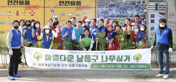 이번 행사는 지역 내 거리환경 개선이 필요한 장소로 만수5동 만경로를 선정해 남천, 황금 측백나무 등 50여 그루를 심어 깨끗한 거리를 만들었다.