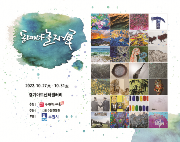수원민예총 관계자는 “해마다 새로운 작품을 선보이는 동네야 놀자전이 시민들 삶에 활기를 불어넣는 전시가 되길 바란다”고 말했다.