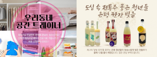 이번에 선정된 계속사업은 경력단절여성을 위한 우리동네 공간정리 트레이너 사업, 청년을 위한 은평 한잔 빚음 사업이다.