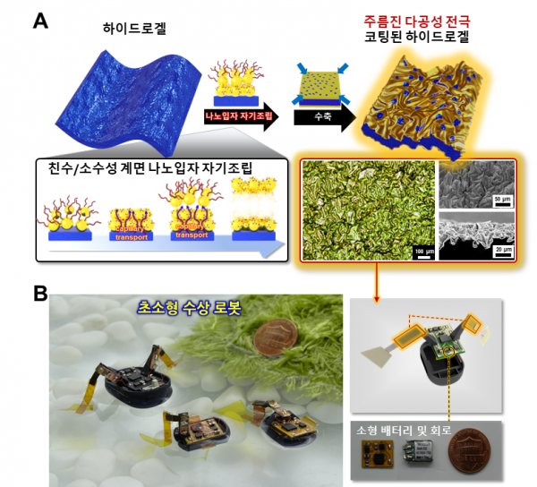 이를 극복하기 위해 연구팀은 하이드로젤 표면에 전극층을 균일하게 도포하고 하이드로젤의 수축현상을 이용해 주름진 전극을 제작했다.